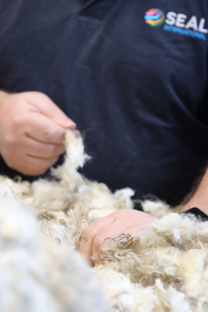 Once the mohair arrives with our processing partner it is graded bag by bag to confirm the producer proposed grade is correct. This is carried out by a highly experienced grader who relies on feel, smell, and visual characteristics to make a judgement. This is a highly skilled process and can very accurately assess the difference between 26 micron diameter and 28 micron diameter – a difference of just 1/500th of a millimetre!