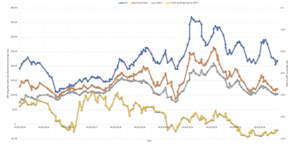 Raw Mohair is a global commodity product with the primary centre for monthly official auctions in South Africa under the auspices of Mohair South Africa. The amounts up for auction vary across the seasons but are typically well in excess of 100 metric tonnes per month. Although there are a number of registered buyers the vast majority of mohair is purchased by just 2 or 3 main buying houses. Prices fluctuate depending on the season and additional uncertainty is added due to the auctions being held in South African Rand which can be quite volatile compared to currencies like the Dollar, Euro or GB Pound.