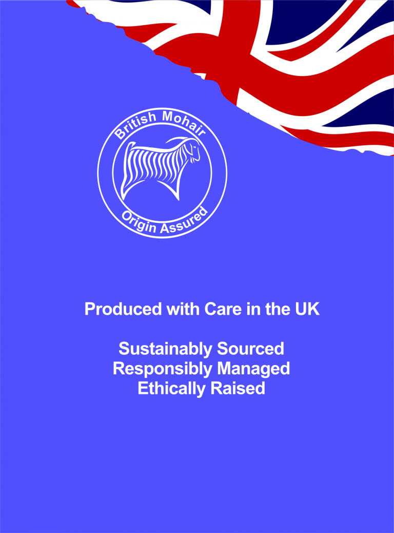 The British Mohair Origin Assured symbol is your guarantee that the product you are buying is of the highest quality, sustainably sourced, locally produced and processed in limited quantities from Angora goats lovingly raised in an ethical and responsible manner on small family owned farms here in Britain.